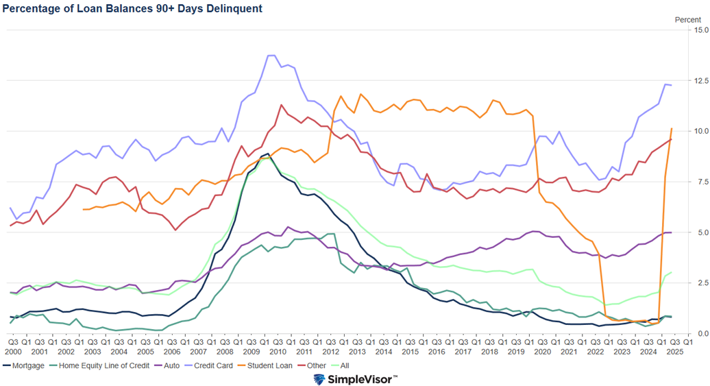 Both articles’ tone was analytical but precise: the economy has not escaped danger. Leading economic indicators flash warning signs, from the Conference Board’s LEI to the . Credit conditions remain tight with delinquencies on the rise, and employment trends, while stable on the surface, have started to weaken in rate-sensitive areas.